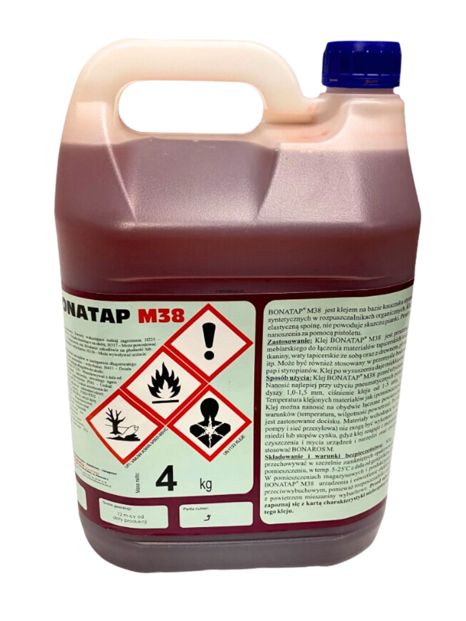 BONATAP® M38 – tirpiklio pagrindu pagaminti klijai, skirti profesionaliam porolono (poliuretano putų), audinių, baldinių apmušalų klijavimui. Išdžiūvę sudaro lanksčią jungtį, kuri nesukelia porolono susitraukimo. Šie klijai tinka vienkomponentiam purškimui abidviems paviršiams. Klijai skirti dvipusiam pistoleto naudojimui.